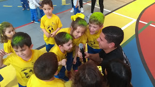 Nossos alunos da Educação Infantil durante atividades em nossa gincana anual. Ao final do evento as equipes festejaram juntas e receberam sua medalhas.