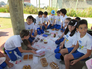 Finalizando alguns conteúdos do bimestre, as turmas dos 5os. anos do Ensino Fundamental realizaram um "health picnic", treinando o vocabulário sobre “alimentação” em Inglês e um “bingo histórico”, retomando os principais aspectos sobre República Populista.